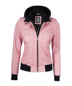 Campbell Womens Pink Bomber Leather Hooded Jacket