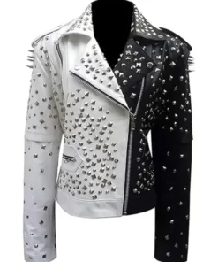 Black And White Studded Biker Leather Jacket