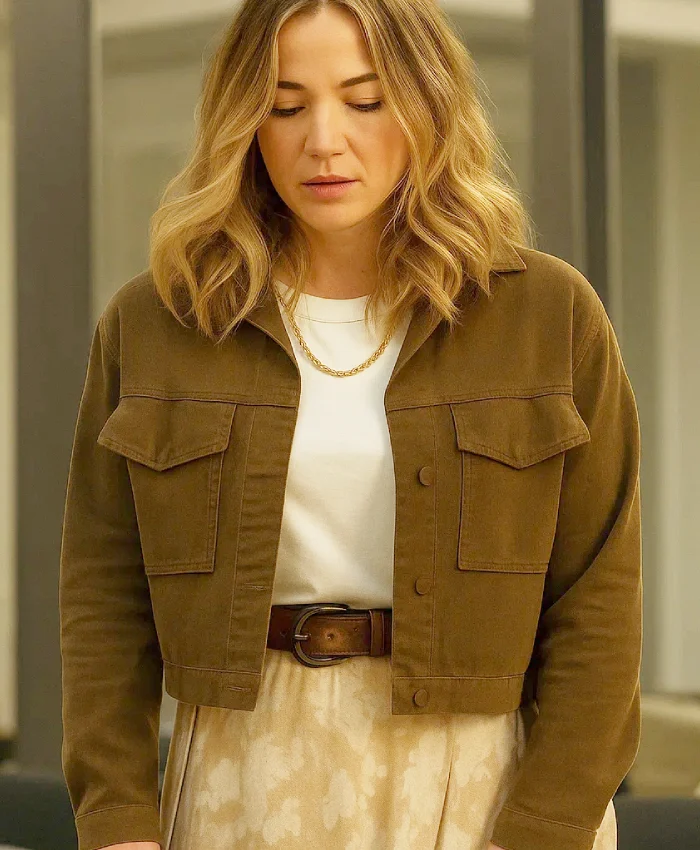 It is true that outfit design in this series has been epic and incredible. Moreover, it is also true that these articles have complemented the screen presence of these actors and improved their acting. Furthermore, talking about Abby Elliott All Her Fault Season 01 Lia Irvine Cropped Brown Jacket it is a smart looking jacket. Likewise, it comes with certain pockets and has a versatile look. You can try to stylize it with a slim jeans or leg jeans with a plain white tee for a casual look.