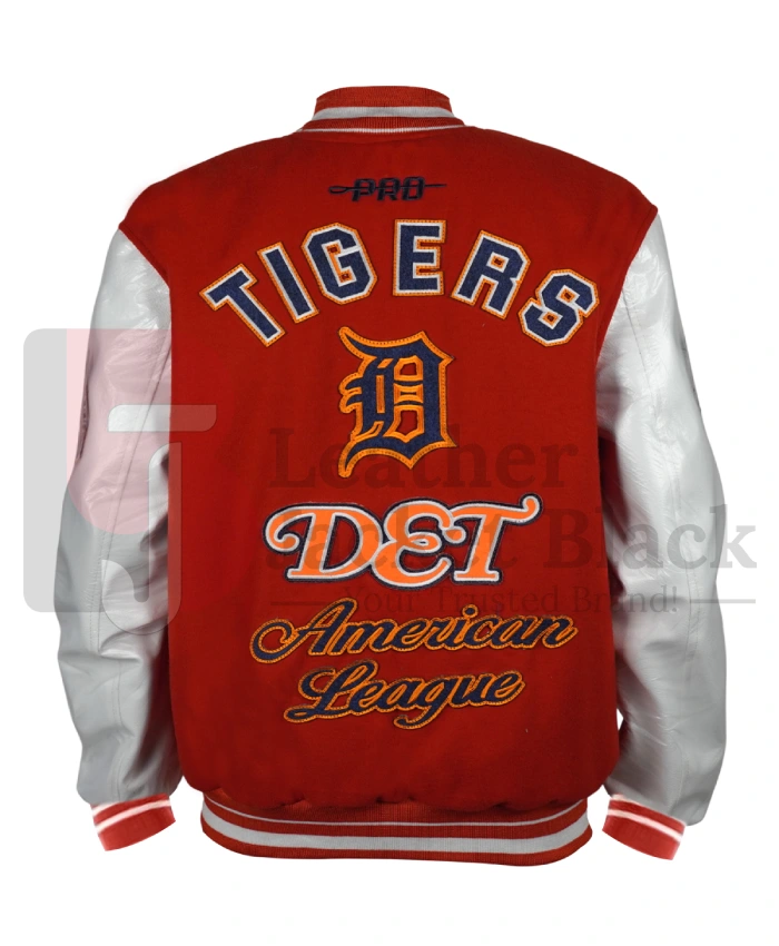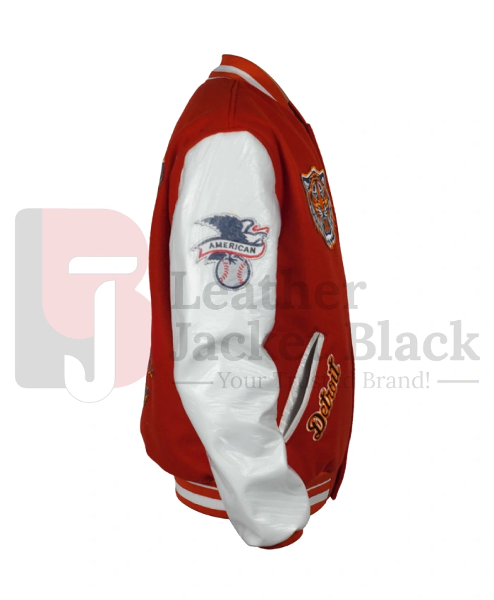 Bring a flash of sporty class to your closet with the American League Detroit Tigers Varsity Jacket. A timeless fusion of tradition and bold style. From Leather Jacket Black. This piece of outerwear captures the original American League baseball style. While embodying the bold spirit of the Detroit Tigers in a bright orange and off-white color combo. Also, the wool body with leather sleeves delivers both warmth and texture. At the same time, the soft viscose lining ensures day-long comfort. So, if you’re at a game, tailgate, or weekend hangout.