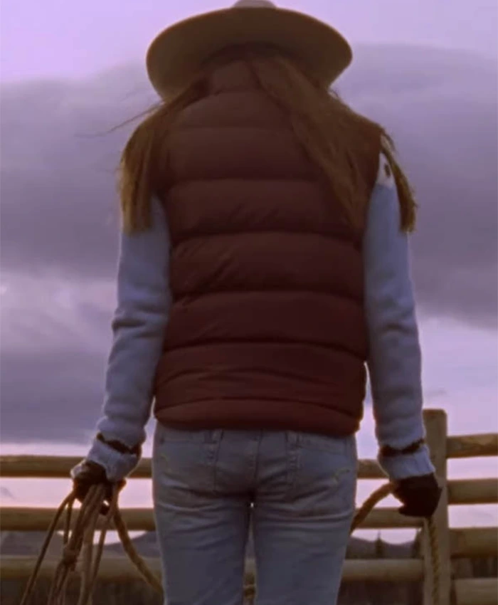 Amber Marshall Heartland TV Series Amy Fleming Puffer Brown Vest