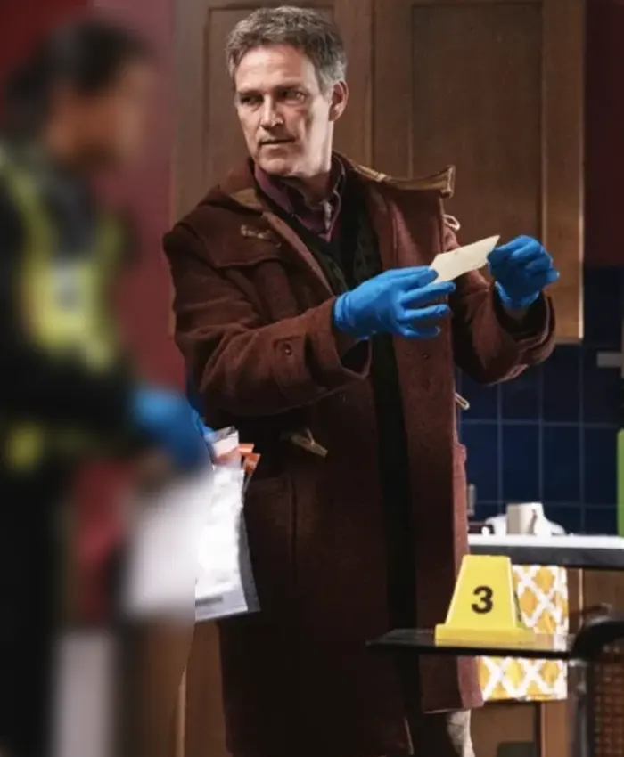 Shop TV-Series Art Detectives Season 01 Stephen Moyer DI Mick Palmer Brown Rust Duffle Wool Coat For Sale