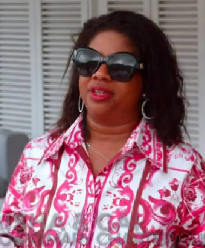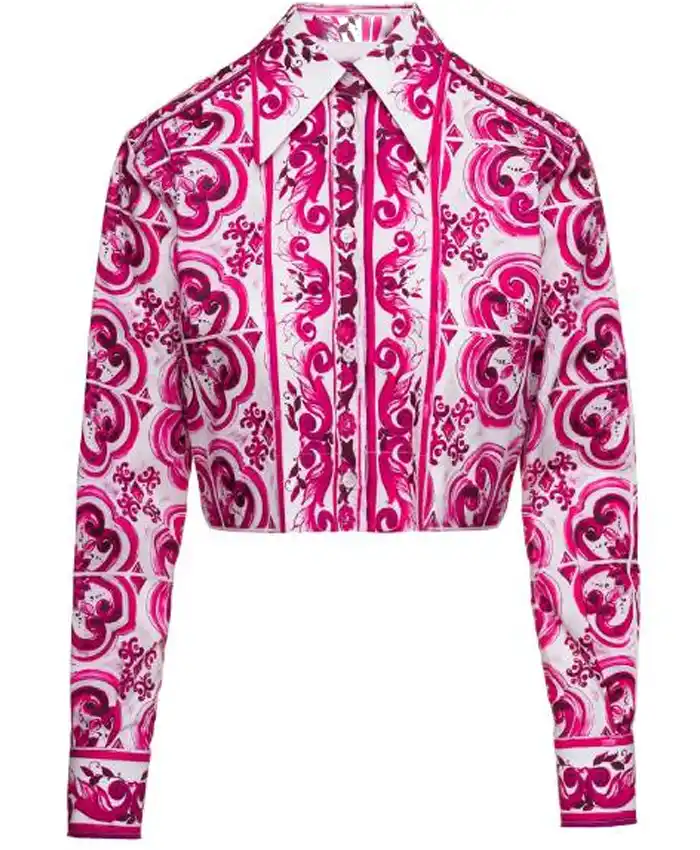 Order Now Below Deck Down Under Season 03 White And Pink Print Silk Shirt For Sale