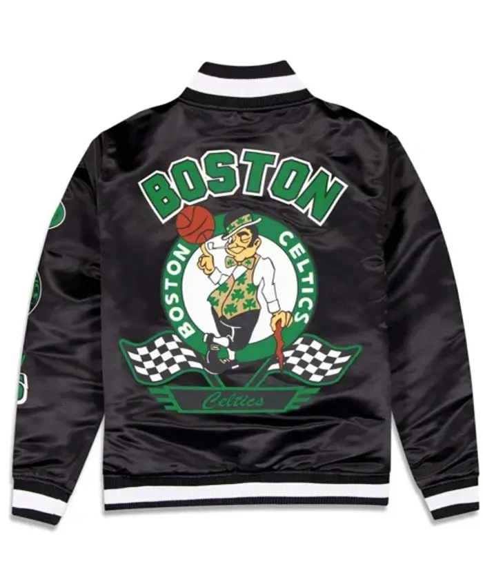 Buy Now Basketball Team Boston Celtics Rally Drive 2024 Black Satin Varsity Jacket For Sale