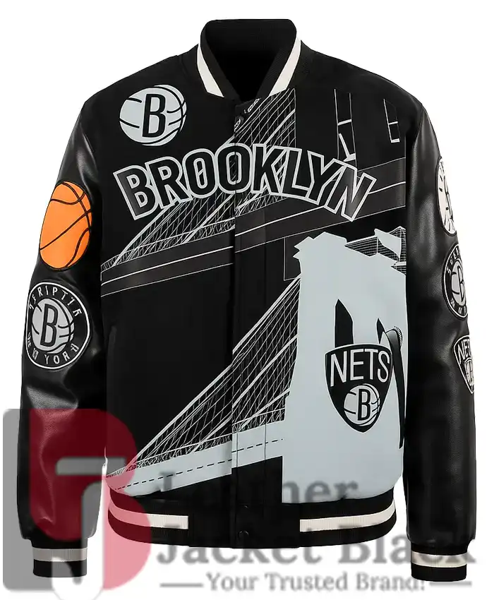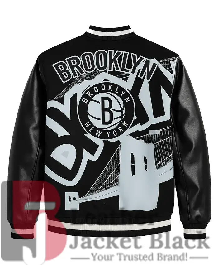 Buy Now Basketball Team Brooklyn Nets Amalia Black Leather Varsity Jacket For Men And Women