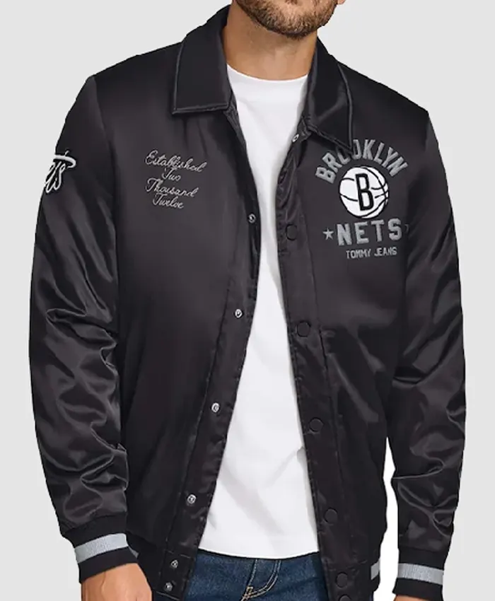 Order Now Basketball Team Brooklyn Nets Stitch Applique Black Satin Jacket For Men And Women