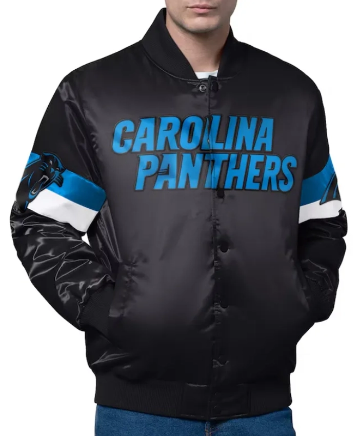 Carolina Panthers Triple Option Varsity Satin Jacket