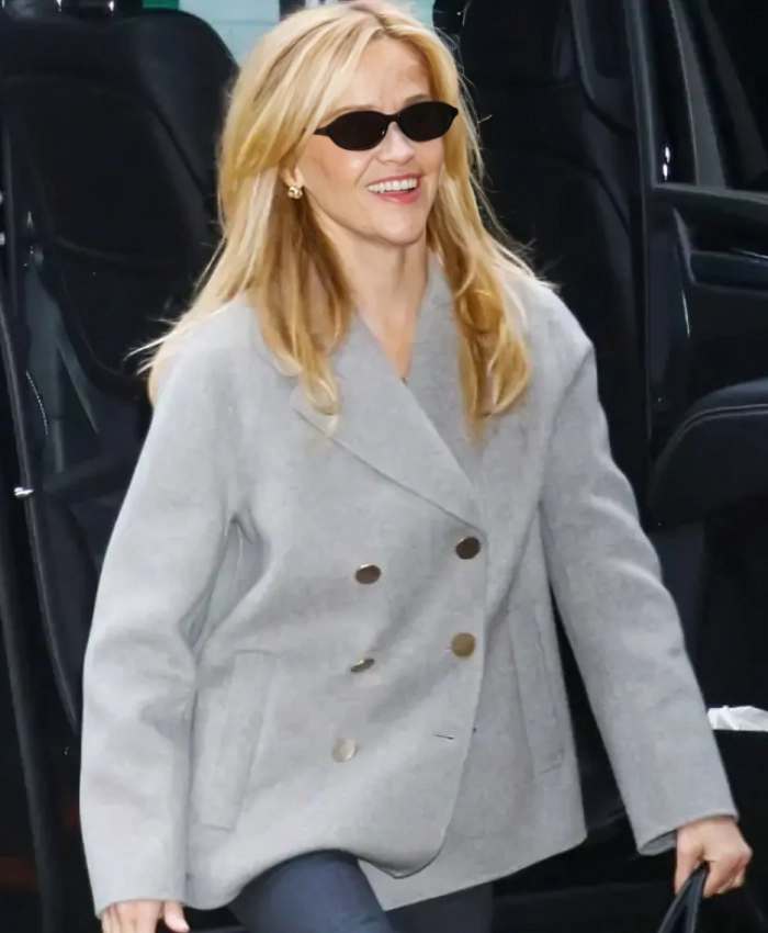 Reese Witherspoon CBS Mornings S06 Double Breasted Grey Blazer