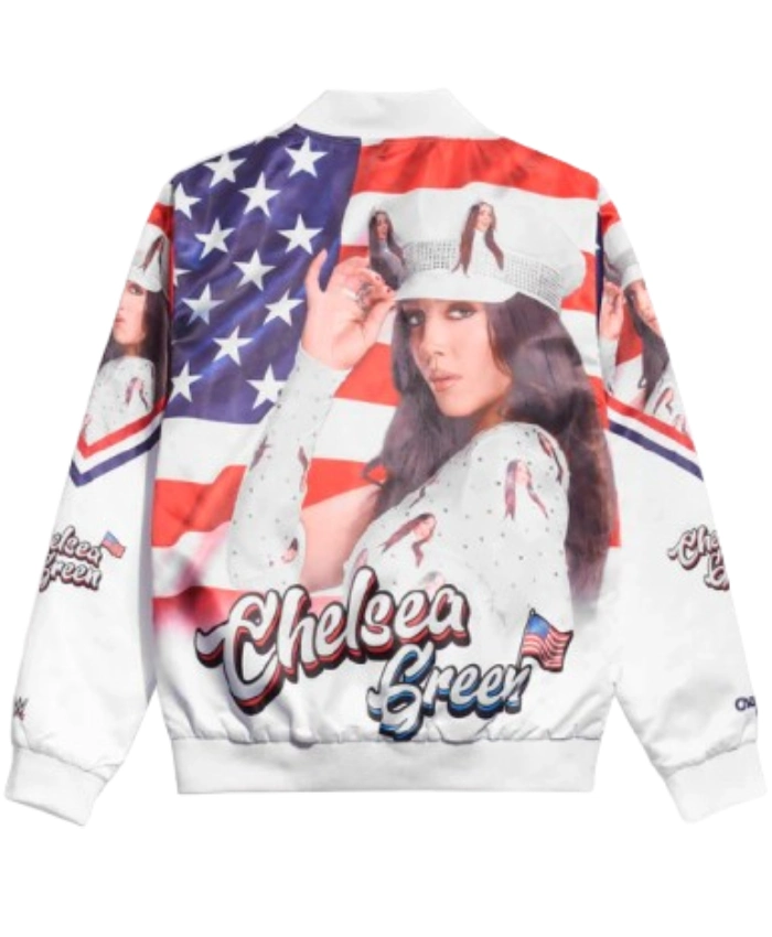 USA Fanimation WWE Chelsea Green Printed White Bomber Jacket