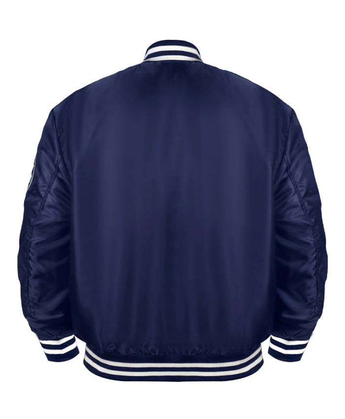 When choosing structured outerwear, a common worry is whether the sleeves will fit properly when you move or drive. Well, the Leather Jacket Black’s Chicago American Giants Script Varsity Jacket solves this problem. By using flexible materials and careful tailoring to make sure you can move freely without losing style. Amazingly, this varsity bomber jacket is made of smooth satin with a soft viscose lining. It moves with your body, so you can wear it comfortably while you walk, drive, or ride the bus. The Bomber Jacket Collection includes the Chicago American Giants Script Blue Satin Varsity Bomber Jacket.