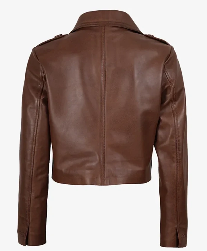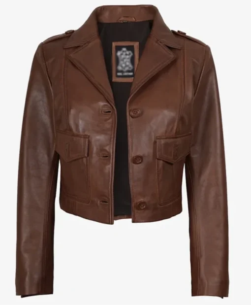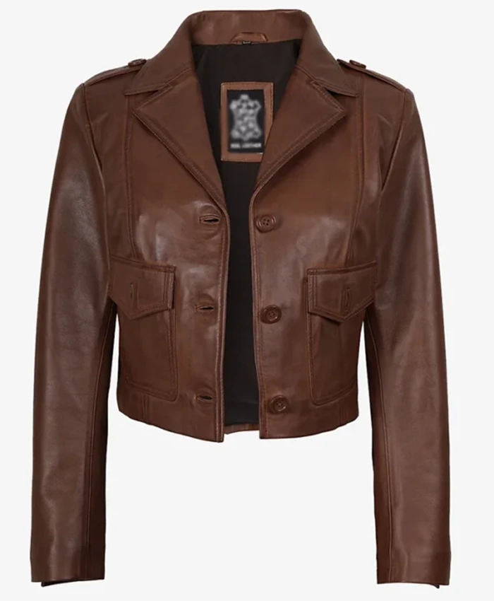 Buy Cognac Lena Brown Cropped Leather Jacket For Him And Her