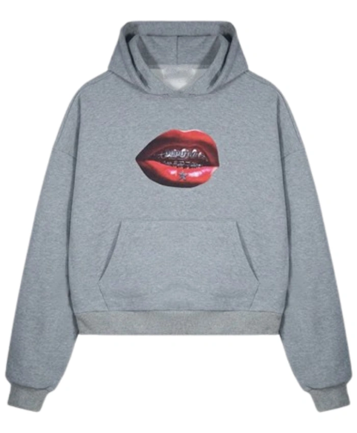 Casual yet stylish, this grey hoodie is casual comfort and lots of style in one easy-to-wear design. Made from cozy fleece, it’s the ideal choice on your next lazy day or low-key outing. The pullover style works well with the hooded neckline for a polished, comfortable look that keeps you warm without being heavy. Its eye-catching front lip graphic design adds a fun, distinctive touch that gives this hoodie its personality. Making it a perfect choice for anyone who values comfort with character.