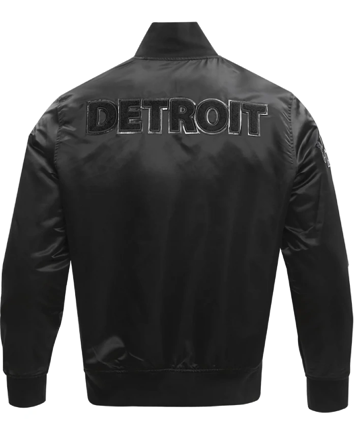 Detroit Lions Triple Black Satin Varsity Jacket for Unisex