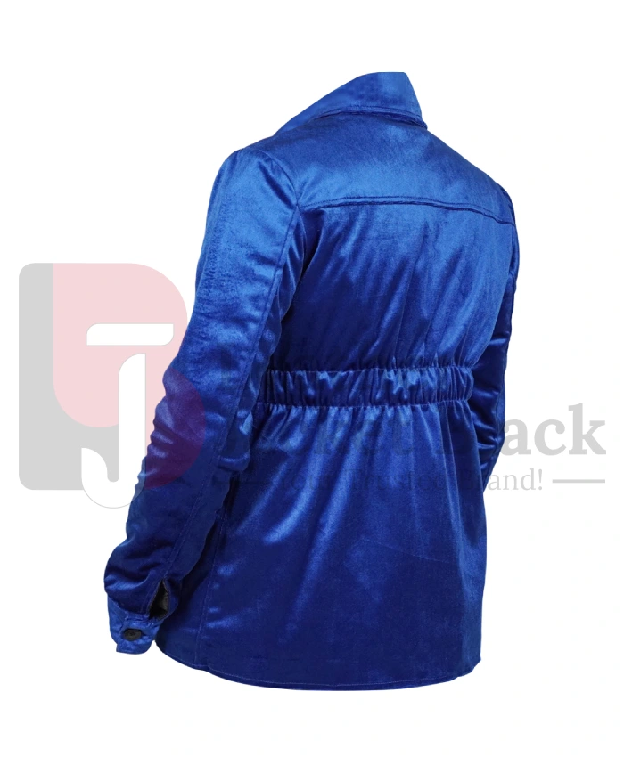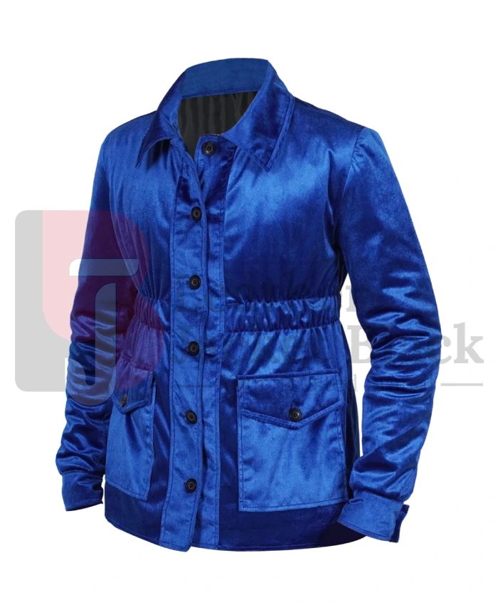 The Sarah Tucker TV Series Down Cemetery Road 2025 Ruth Wilson Blue Velvet Jacket is made of high-quality materials and is both comfortable and stylish. The structured buttoned closure and shirt-style collar give it a polished, tailored look. At the same time, the soft viscose lining keeps you warm and makes it feel good. The full sleeves end in precise buttoned cuffs, which look like a clean line that is both elegant and useful. This jacket fits perfectly into the Down Cemetery Road Outfits lineup because it was made to look like the clothes on screen.
