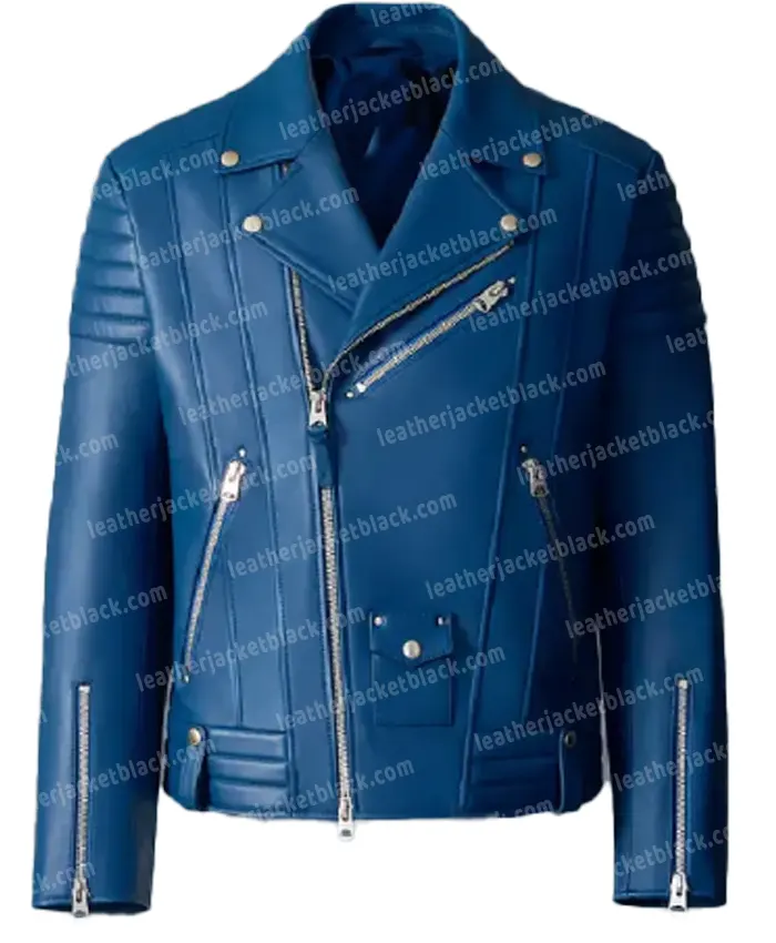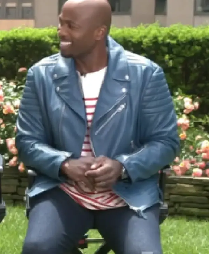 Buy Now E News 2025 Akbar Gbajabiamila Blue Biker Motorcycle Leather Jacket For Men And Women