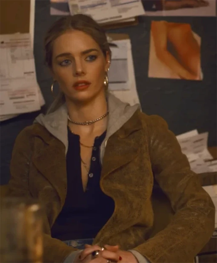 Buy Now Edie Movie Eenie Meanie 2025 Samara Weaving Brown Suede Leather Coat For Unisex
