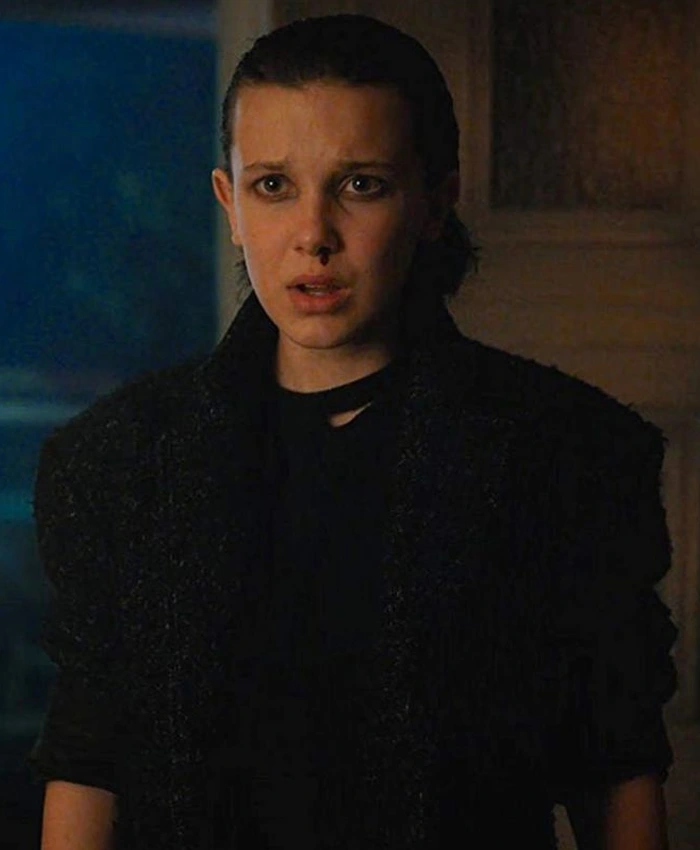 This Eleven stranger things 3 coat is manufactured with the external material as wool blend and the internal material of this elegant style coat is viscose lining. The front closure of this adorable style coat is designed as open style. The color of this attractive style coat is black. This coat is available at leather jacket black with discounted price. You can buy this for yourself or you can gift it to you friends and loved ones.