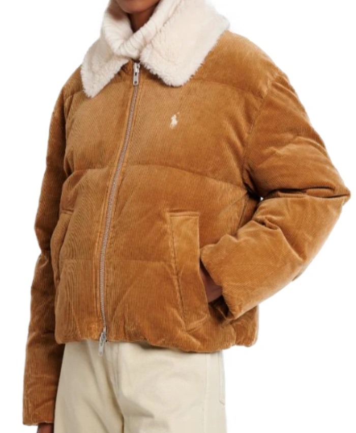 Emily Hall A Merry Little Ex-Mas 2025 Brown Corduroy Puffer Jacket