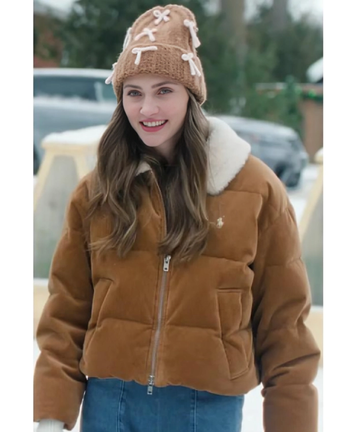 Sienna Movie A Merry Little Ex-Mas 2025 Emily Hall Brown Corduroy Fur-Trim Puffer Jacket