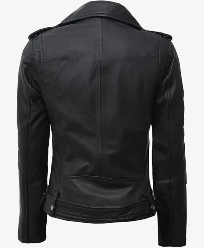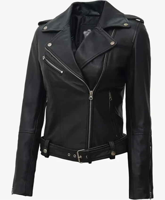 Get Fashion Asymmetrical Black Biker Leather Jacket For Sale