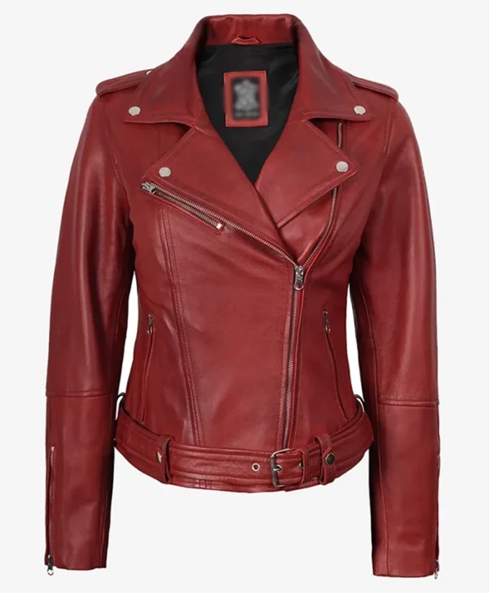 Be the first to review “Fashion Margaret Red Leather Biker Jacket”
