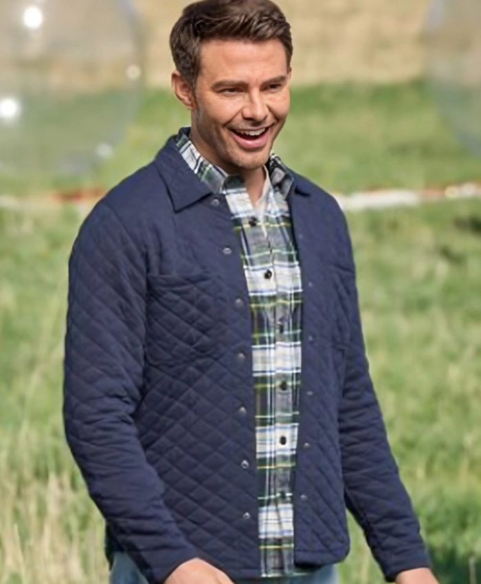 When you’re wearing something you don’t want to get stained, crowded places or busy mornings can be stressful. That tension gets worse with lighter or more detailed pieces. Amazingly, the Finding Mr Christmas S2 Jonathan Bennett Blue Quilted Shacket takes away that fear with a fabric blend. That is much better at handling everyday accidents than fragile outerwear. The quilted design of this item is based on Jonathan Bennett’s look in Season 2. It adds texture that hides small marks while still looking clean. Well, it adds comfort and structure to basic outfits or even a black leather jacket when worn over them.