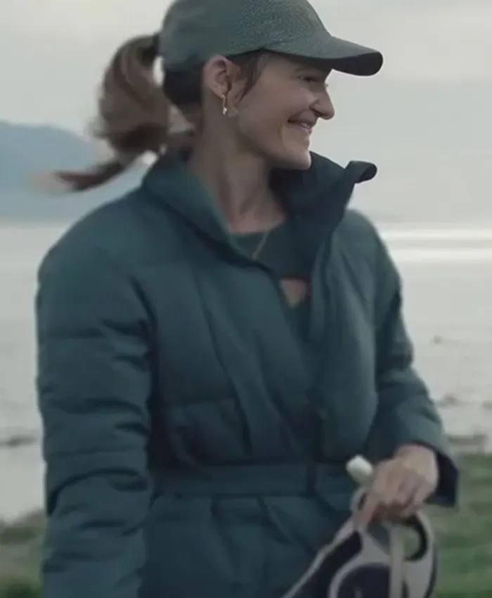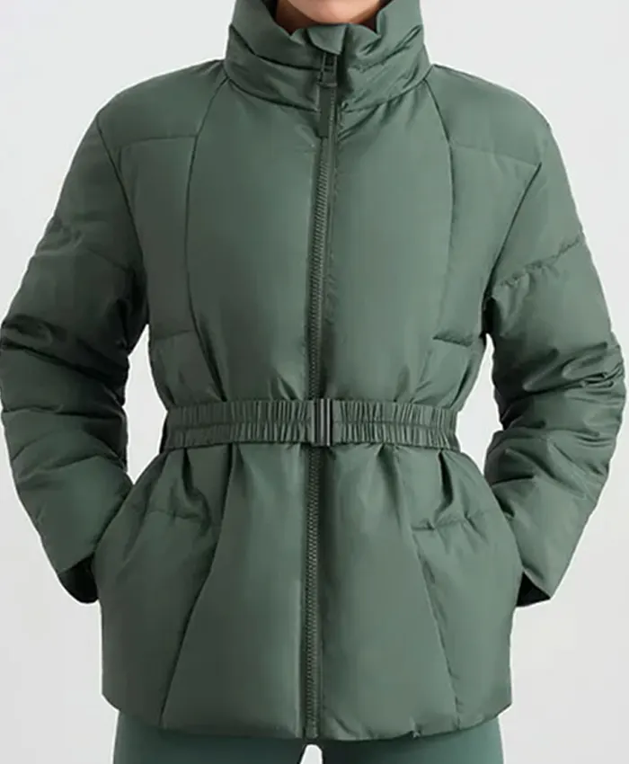 Shop Now Tess TV Series Friends Like Her Season 01 Tess Haubrich Teal Belted Puffer Jacket For Sale