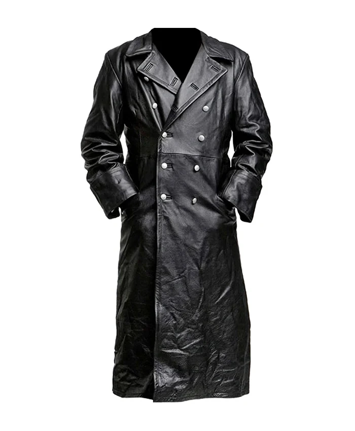 German Classic Officer WW2 Military Uniform Leather Trench Coat