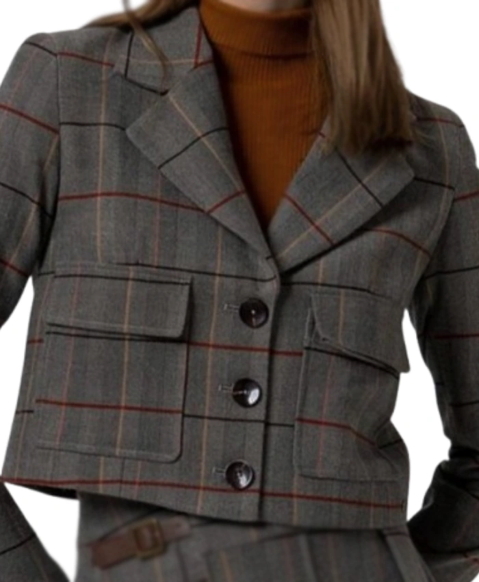Rose McIver TV Series Ghosts US S5 Sam Grey Plaid Cropped Jacket