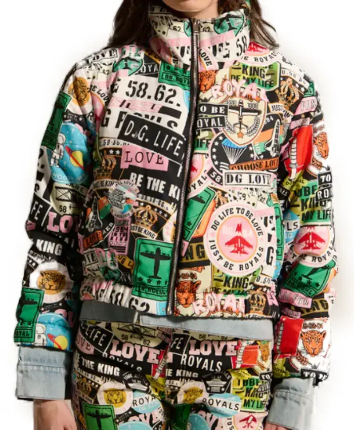 We offer you the Women’s Giulia Akira Multicolor Layered Graphic Bomber Jacket, like Giulia’s. We have created this jacket as a unisex clothing article, which both men and women can shop for here. As we have made this jacket from polyester, it is lightweight, durable, and moisture-wicking, perfect for both fashion and high-intensity activities. It also has two outside pockets and one inside pocket to store your essentials, like a smartphone and a compact mirror. Not to mention, we have this clothing item available in our store in all possible sizes for both men and women.