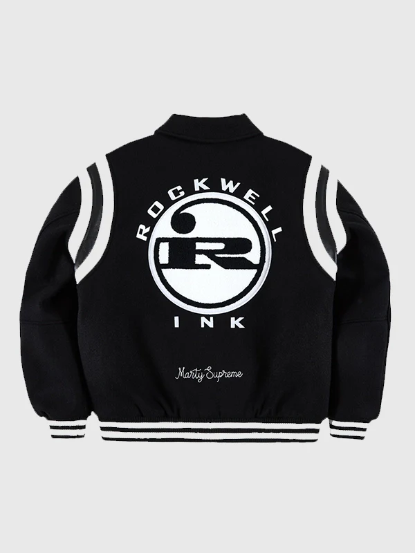 This Golf Wang x Marty Supreme 2025 Rockwell Wool Varsity Jacket is made of high-quality wool. And has a smooth inner viscose lining that makes it comfortable to wear all day. It is both stylish and comfortable. It has a shirt-style collar and a front closure with snaps. And full-length sleeves with rib-knitted cuffs that give it a structured but relaxed fit. Well, the black color makes the look last, and the two outside. And two inside pockets make it useful every day without sacrificing style.