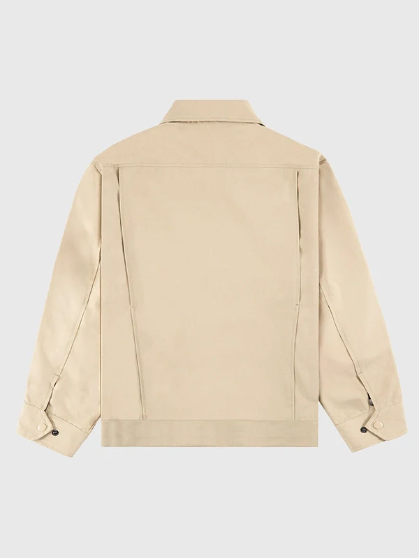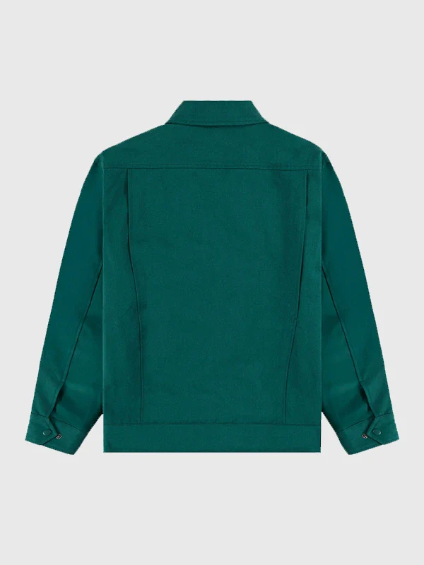 The Golf Wang x Marty Supreme 2025 Wally Work Jacket is made of high-quality cotton and has a soft viscose lining. In addition, it is meant to be comfortable and last a long time. Indeed, it has a collar like a shirt and a smooth zipper that makes it easy to put on. The cuffs have snap buttons that let you change the fit for comfort. Green and beige together make things look different.