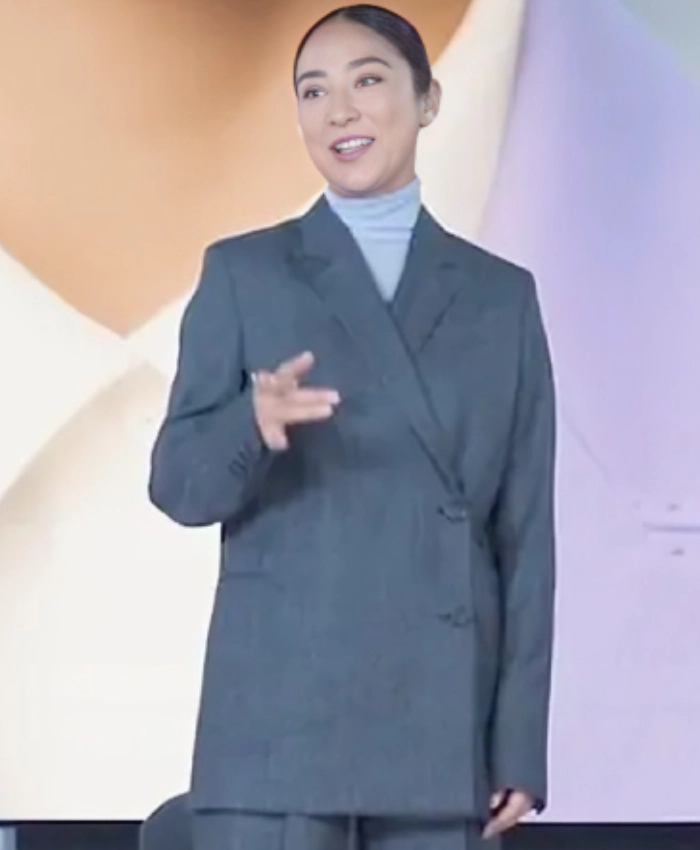 Stella The Morning Show S04 Greta Lee Bak Double-breasted Woven Grey Blazer