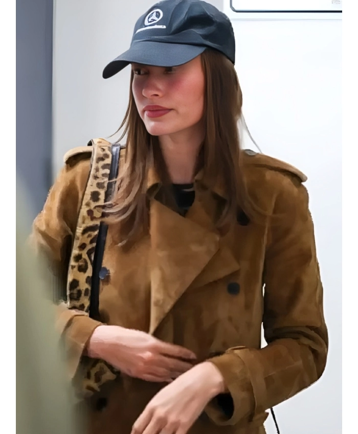 Some coats have design features that look useful but don’t really help when you need them. Especially when it comes to coverage and structure. The Hailey Bieber Sushi Park Brown Suede Trench Coat takes away that doubt with careful craftsmanship that puts both form and function first. Well, this item is made of suede leather and has a soft viscose lining. It feels smooth on the inside and warm and steady on the outside. The wide notch lapel collar gives it a more polished look. And the double-breasted button-and-belt closure lets you adjust the fit, which makes the trench coat shape even better.