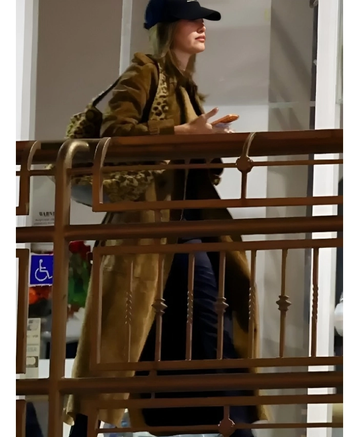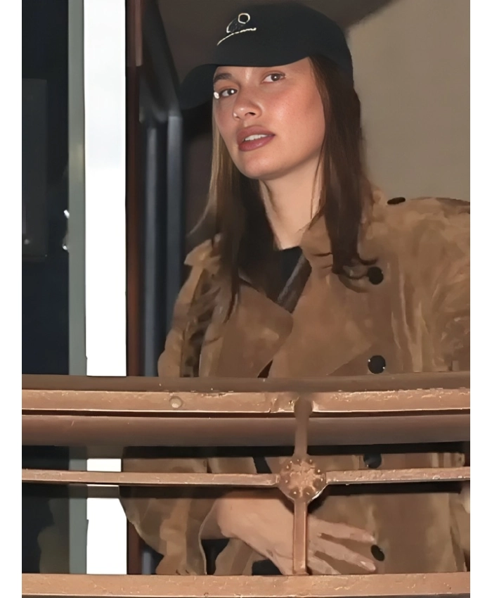 Hailey Bieber Sushi Park Brown Suede Trench Coat