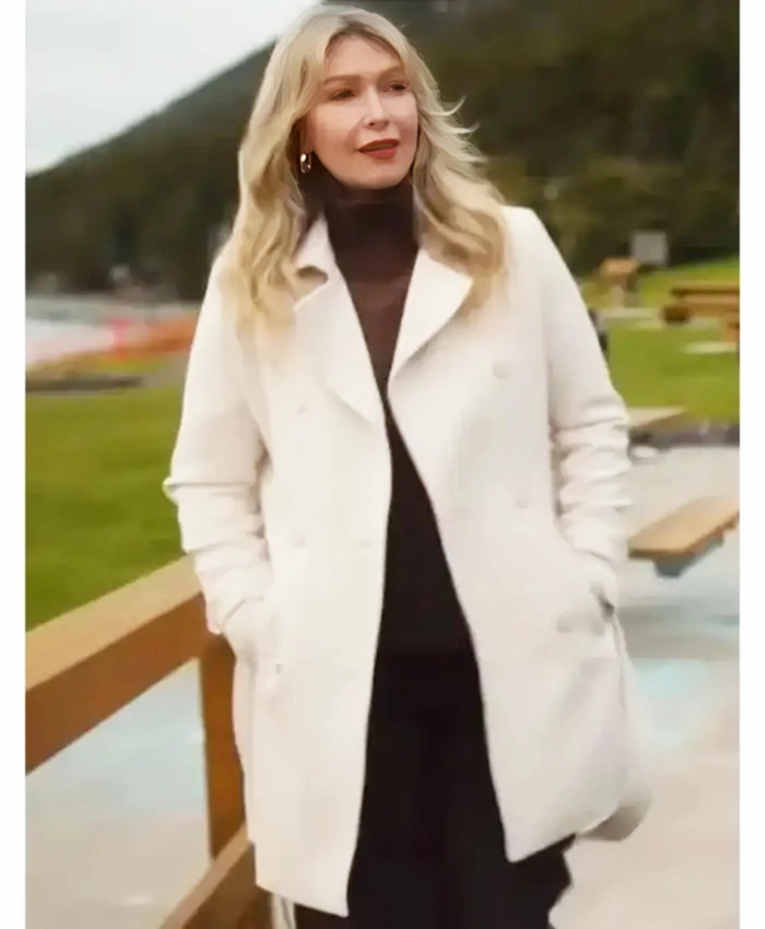 The Lauren Vandenbrook Hudson & Rex Amanda Lyddon White Wool Coat is made from a wool blend and lined with viscose for extra comfort. It is based on Amanda Lyddon’s character. While it features a double-breasted button closure, the silhouette remains lightweight enough to support a natural drape. Also, the lapel collar, full sleeves, and rounded cuffs elevate the coat’s refined appearance. While the two outside pockets and one inside pocket keep it functional for daily use.