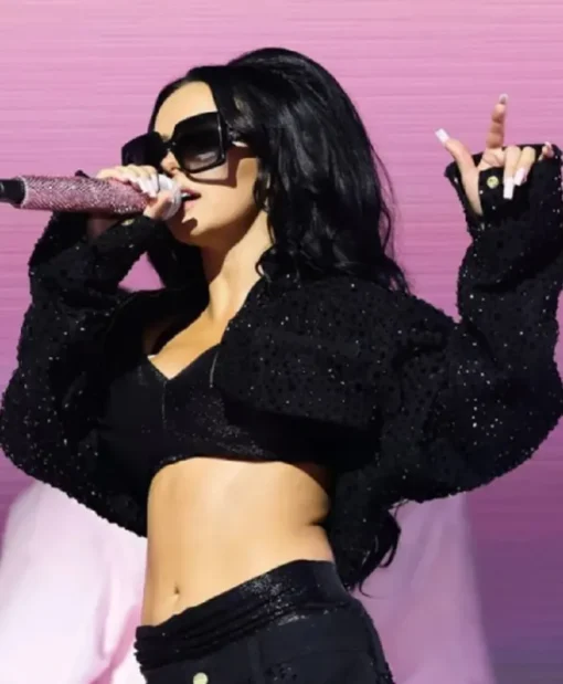 Shop Now Jessie Murph 2025 Coachella Valley Music And Arts Festival Black Cropped Jacket For Sale