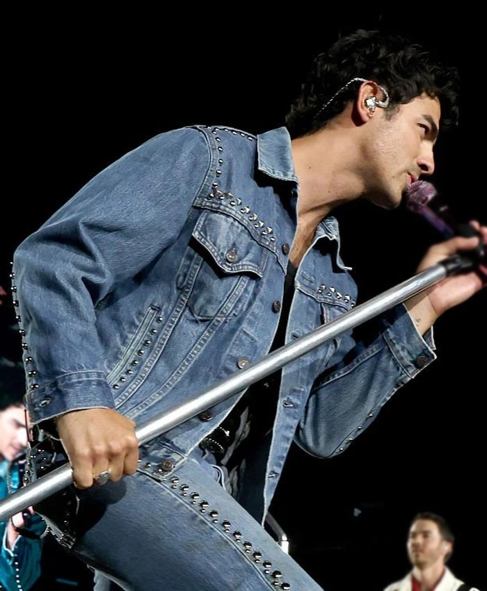New Jersey USA Greetings Tour Joe Jonas Mom’s Favorite Blue Studded Denim Jacket