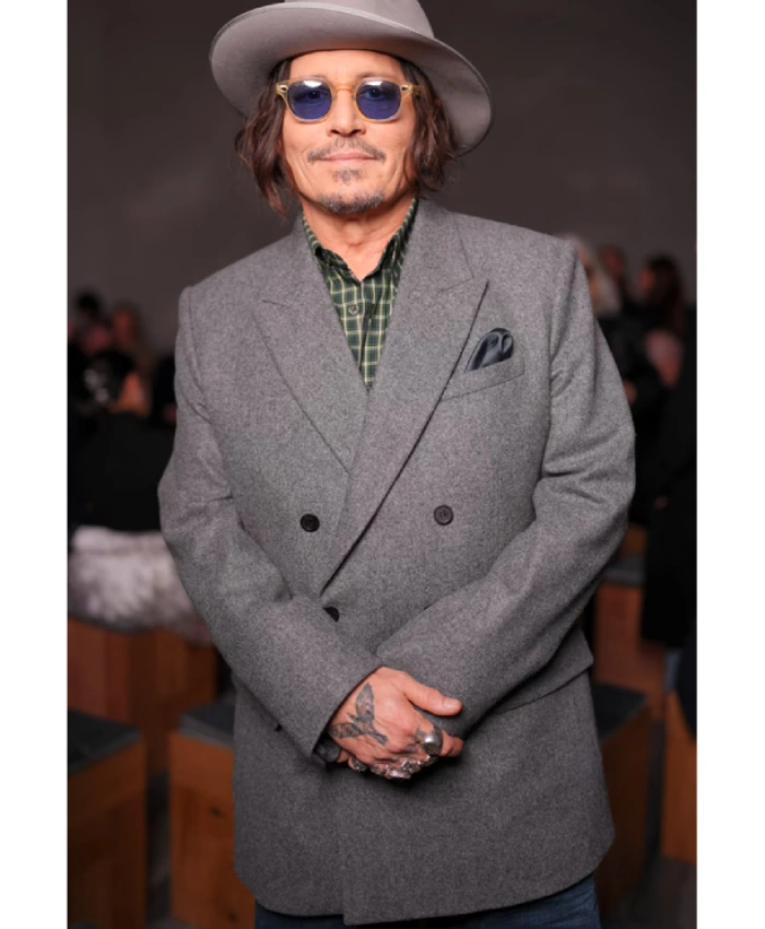 With its classic and suave look, this elegant Johnny Depp PFW 2025 Blazer offers an everlasting charm and is the ultimate definition of glamour. Made with high-end wool-blend fabric. It offers the ideal mixture of warmth, comfort, and structure. It features a tailored cut with a double-breasted button closure, which adds a touch of timelessness to a familiar silhouette. The collar style of the lapel adds to the luxury of this jacket. The soft grey hue exudes subtle luxury. Making this garment perfect for formal occasions, business functions or even “dressy casual” events. The detailing of each aspect exudes a sense of precision. And ease for the man who appreciates a classic style.