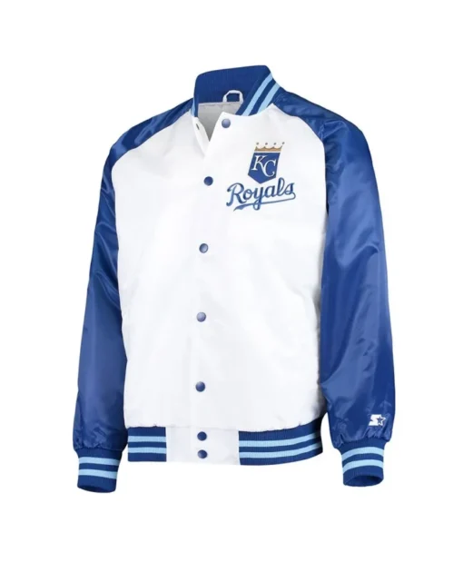 Clean-Up Hitter Kansas City Royals Satin White and Royal Full-Snap Jacket