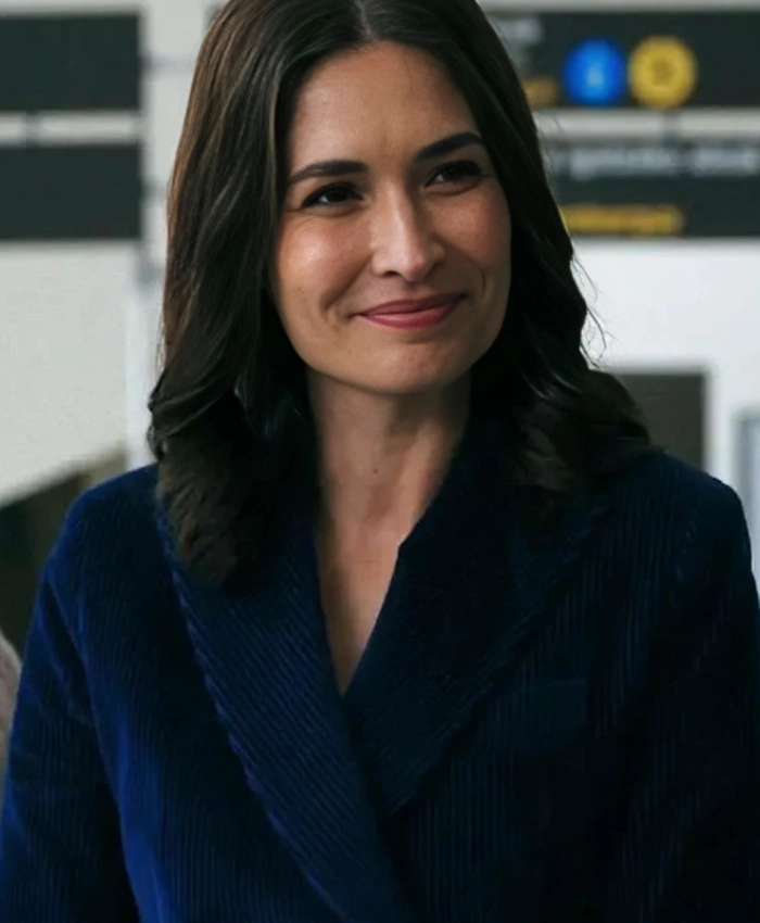 While the full sleeves are perfectly paired with open hem cuffs create a relaxed yet polished appeal. Its lapel collar enhances refinement, framing your look with confident charm. The Ana TV Series Pluribus 2025 Karolina Wydra Blue Corduroy Blazer is more than just outerwear. It’s a fashion statement for women who lead with style. Also, the deep blue tone exudes elegance, suitable for autumn gatherings and creative workspaces.