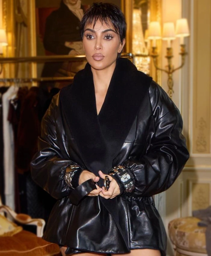 Famous for being famous, Kim Kardashian recently wore a black leather jacket while in Paris, France, for Paris Fashion Week. Similar to her various other outfits, the open-style Kim Kardashian Black Leather Jacket with studded cuffs and a belted closure created lots of buzz among her fans and fashion lovers alike. Perhaps you have been looking for the same jacket and ended up here. Then, you have arrived at the right place!