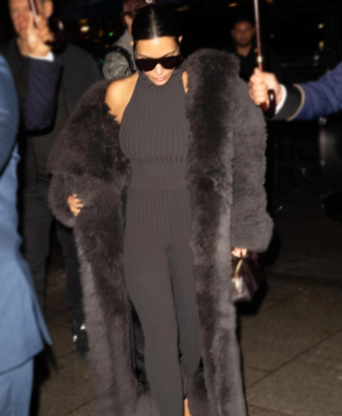 Paris Fashion Week 2025 Kim kardashian Black Fur Long Coat