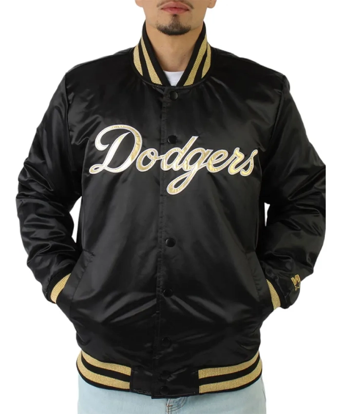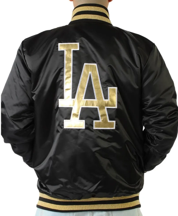 Buy Gold Patches Los Angeles Dodgers Satin Black Jacket For Men and Women