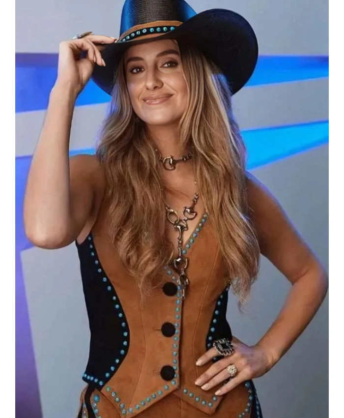 Well, this makes it perfect for people who value both honesty and self-assurance. It can be hard to find the right outfit for the occasion. You want something that looks good but also has a traditional feel. Furthermore, the CMA Fest Lainey Wilson Brown & Black Cowboy Leather Vest makes that easy. It has a striking contrast of brown and white that captures the elegance of the country. Also, the sleeveless style makes it light and easy to wear with other clothes. Like shirts or tees, for concerts, festivals, or just hanging out.