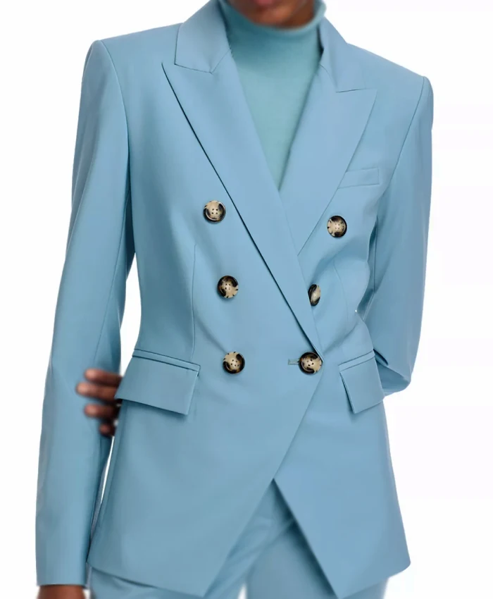 We offer you the Loot: Season 3 Sofia Salinas Blue Double Breasted Blazer, as a part of our Loot TV Series Outfits. We have created this light blue blazer after taking inspiration from the character Sofia Salinas, as a unisex clothing article. So, both men and women can shop for it from our online store. It also has two outside pockets and one inside pocket to store basic items, like a smartphone and a pen.