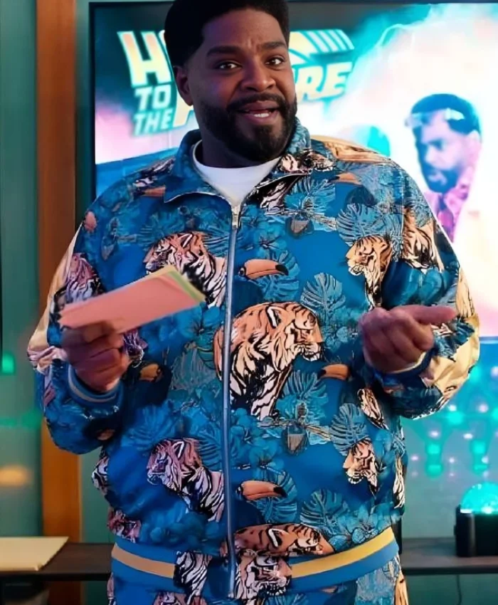 Also, each stitch reflects careful craftsmanship, creating a blend of comfort. Well, confidence and a bold personality in one standout piece. In addition to its striking appearance, functionality shines. Through with two outer pockets and one inner pocket. It also provides space for your essentials while maintaining a sleek silhouette. So, if you’re heading out casually or making a statement. This Ron Funches TV Series Loot S03 Howard Tiger Pattern Tracksuit jacket radiates charm and creativity.