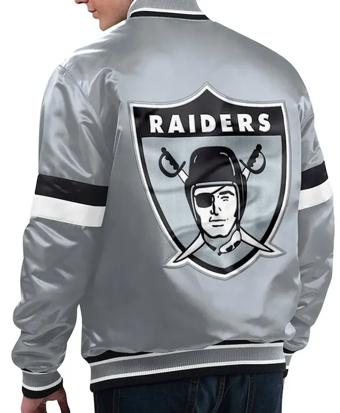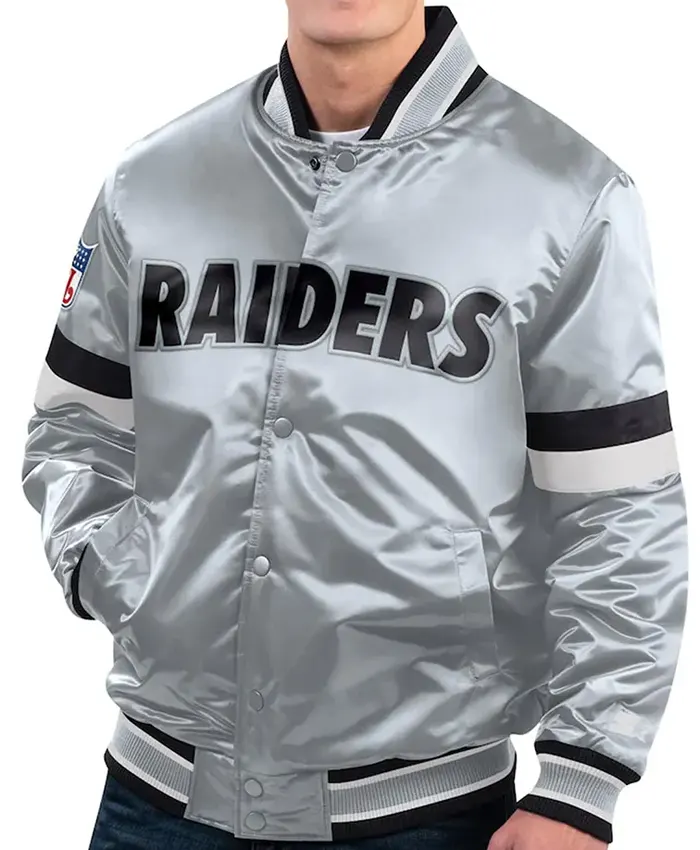 Buy Now American Football Team Las Vegas Raiders Classics Home Game Satin Silver Varsity Jacket For Sale
