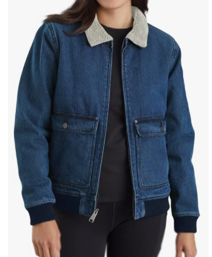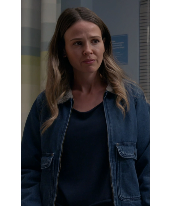 Jocelyn Hudon Chicago Fire S14 Lyla Novak Sherpa Collar Denim Jacket