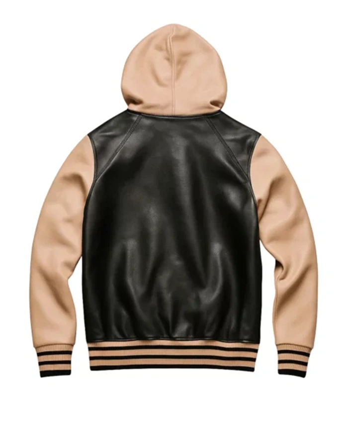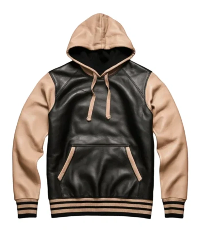 Buy Now Alwyn Black And Beige Leather Hoodie For Men And Women